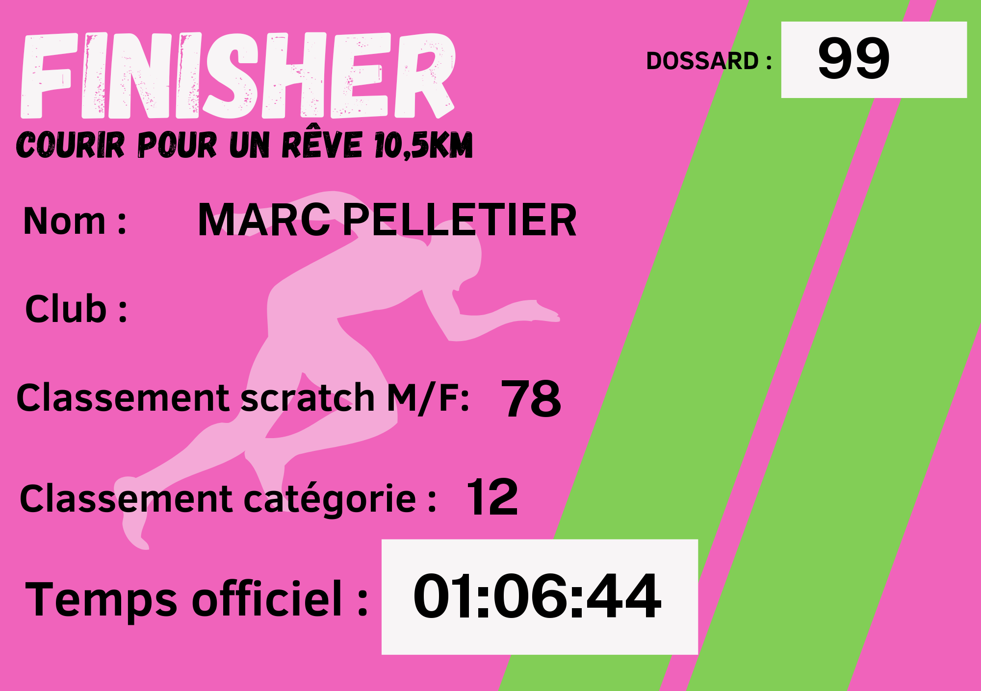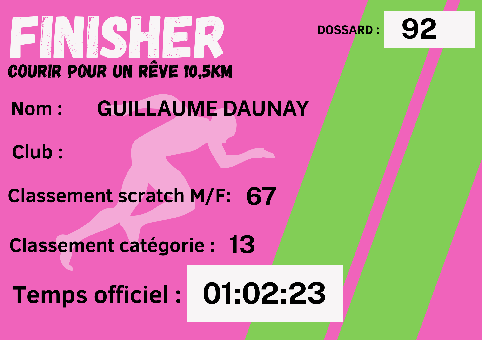 | N° de dossard | 67 |