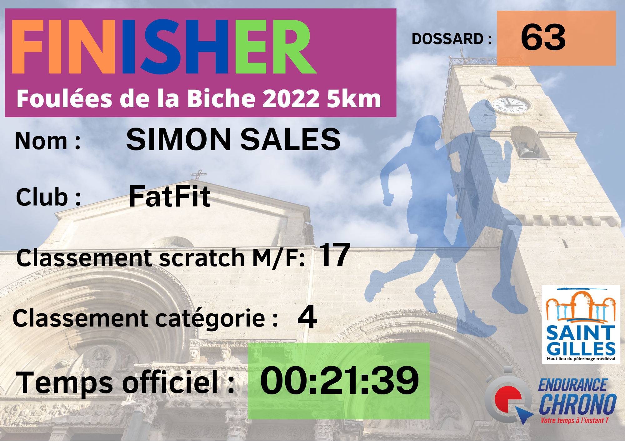 | N° de dossard | 63 |