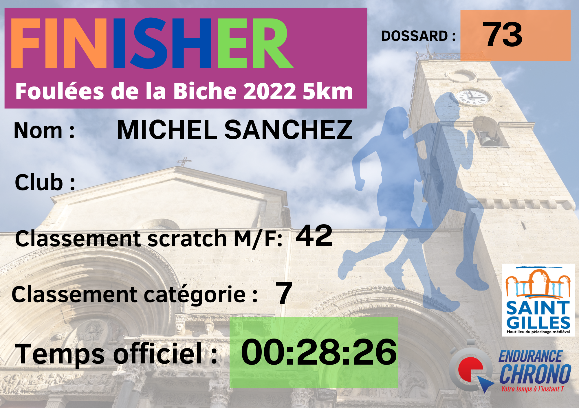 | N° de dossard | 73 |