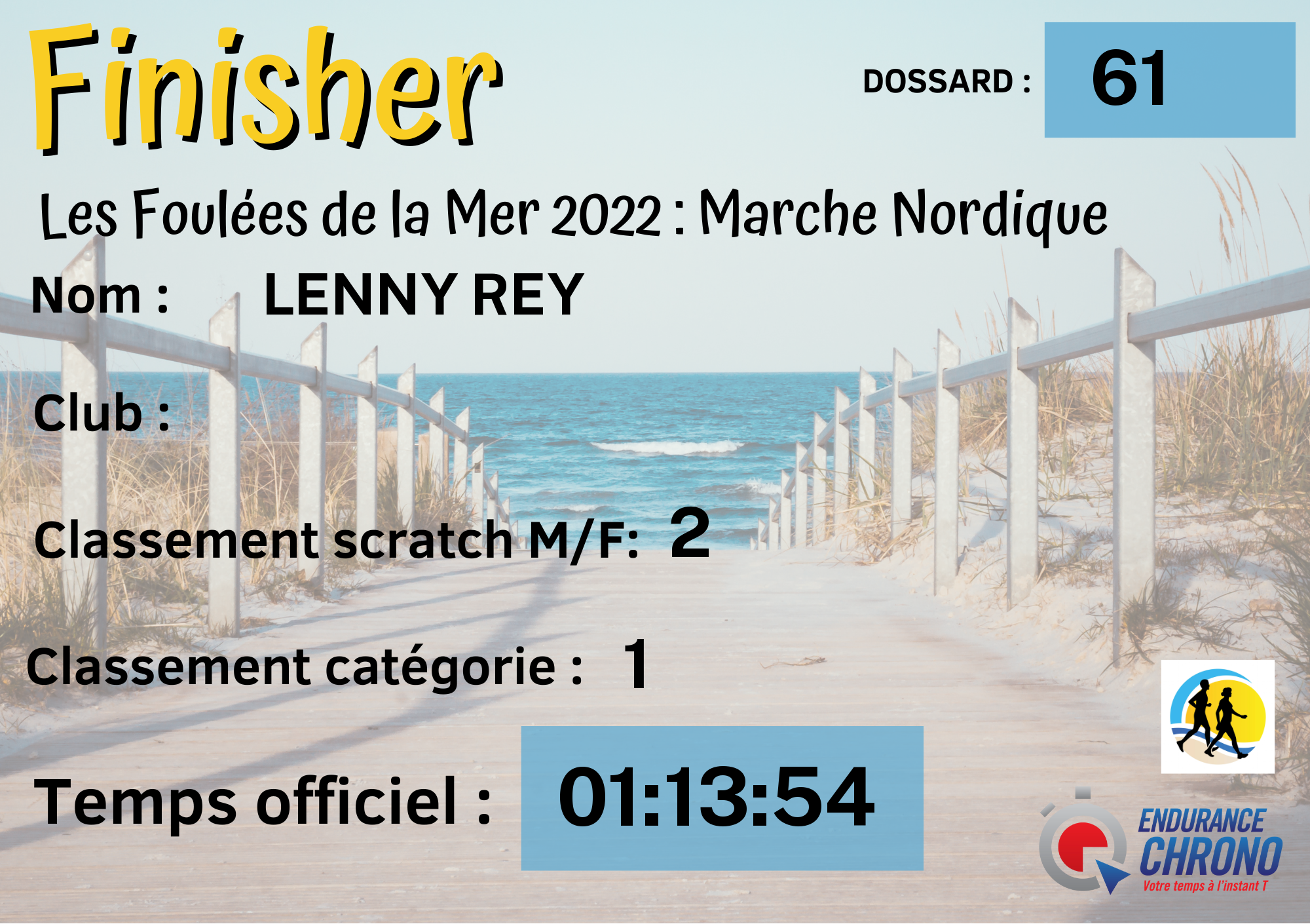 | N° de dossard | 61 |