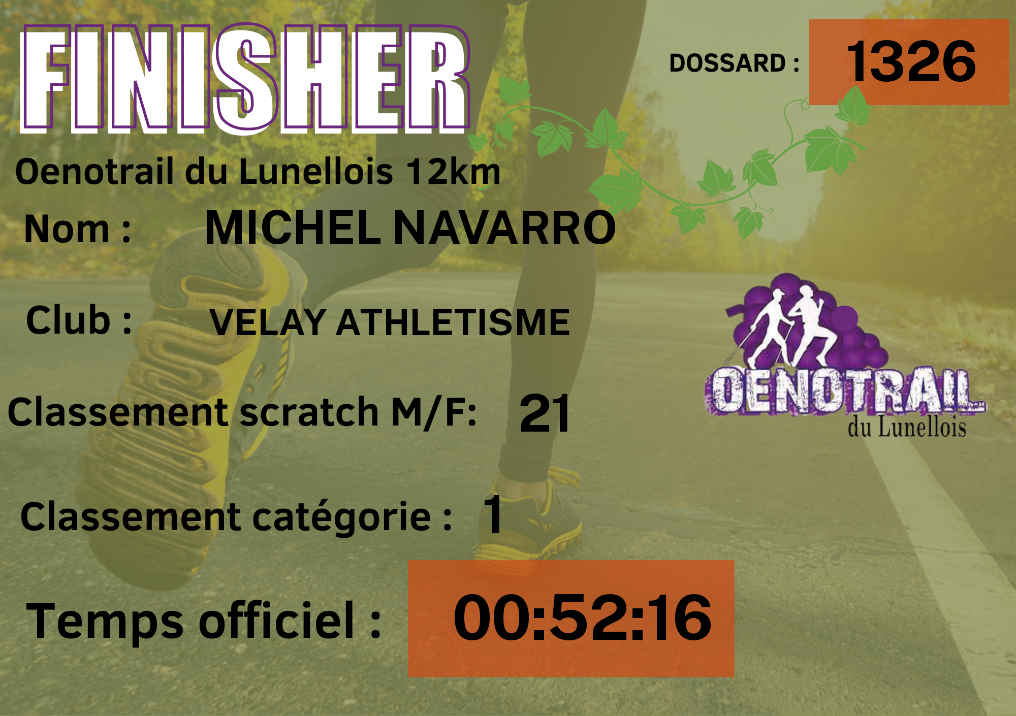 | N° de dossard | 1326 |