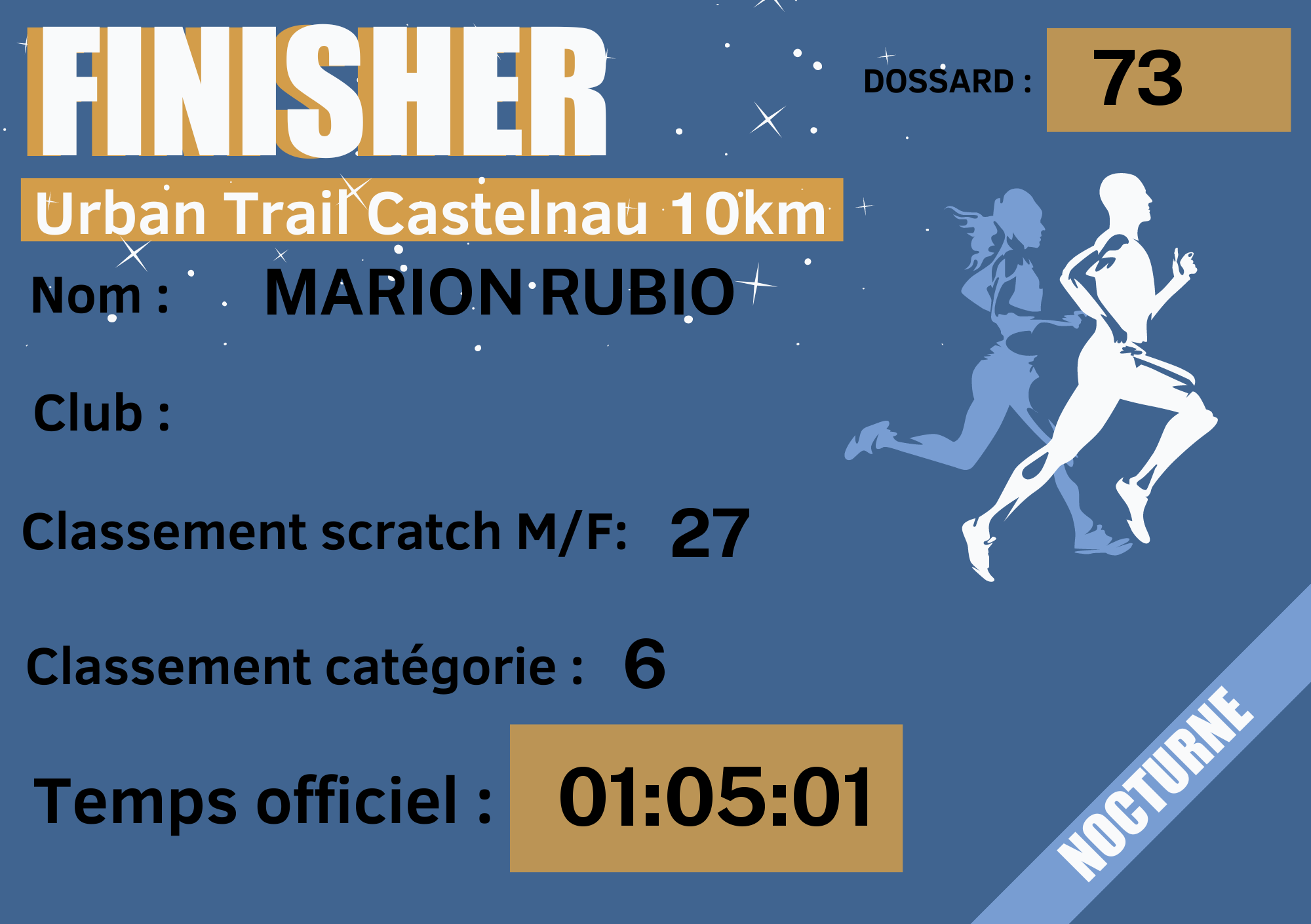| N° de dossard | 73 |